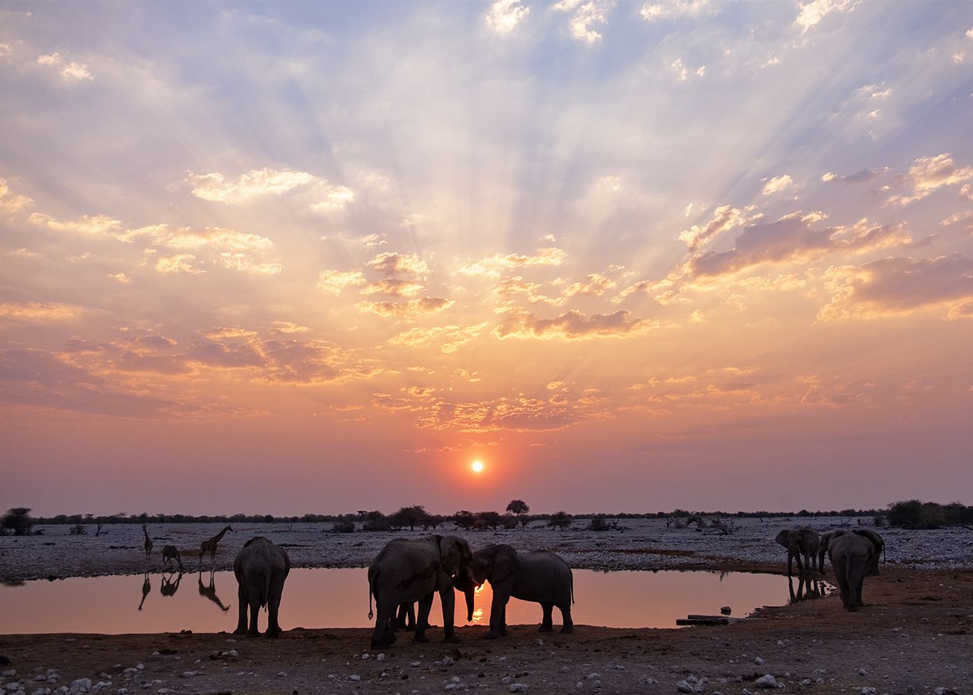 Avremo già occasione di fare un breve safari nei dintorni prima di rientrare per godersi il tramonto vicino allo spettacolare laghetto in cui gli animali arrivano la sera per abbeverarsi.