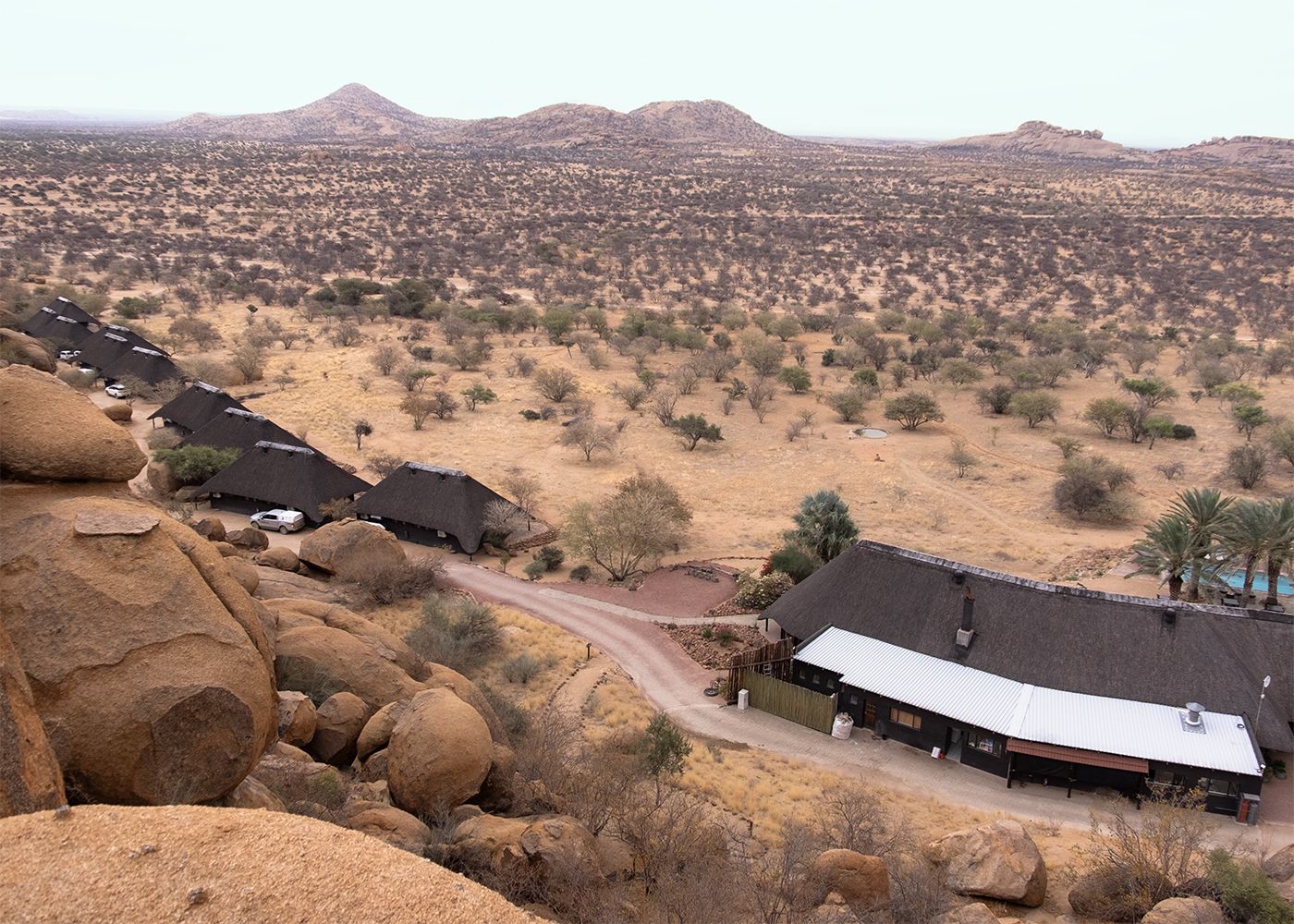 Usciti dal parco entriamo nella regione del Damaraland, raggiungendo la nostra base per la sera.